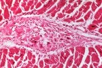 H) Subacute bacterial endocarditis, vegetation within myocystes